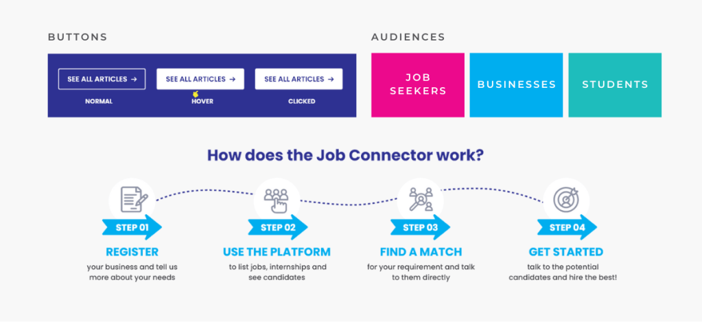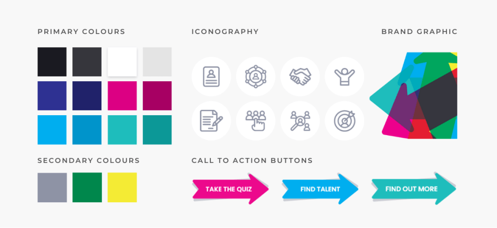 The extended visual language of the brand includes a wider colour palette, custom UI buttons, iconography, infographics and audience based colour coding that is weaved into UI and collateral.
